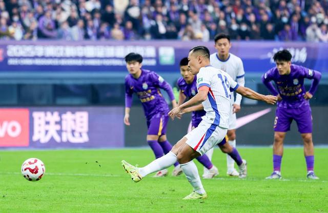 ↑2025年11月22日,上海申花队球员吴曦(前)在中超第30轮点球破门。新华社记者 孙凡越 摄曾获得2020年金球奖的他说