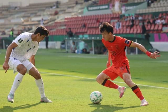 ↑1月17日,中国队球员王钰栋(右)在U23男足亚洲杯四分之一决赛比赛中。新华社记者 王海洲 摄他也成为第一位